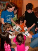 We have also begun a busy birthday season, starting with Alison turning 7. We recently celebrated Jennie’s 11th birthday and next week will celebrate Emily’s 13th birthday. It’s a fun time of cake and a party with family at home. The children even have a homemade pin the tail on the donkey game, which we tape up for each birthday. One of the little girls favorite pastimes in America was rediscovered recently when their old dress up clothes that Greg and I shipped before we left the US last November finally arrived in Kyiv.